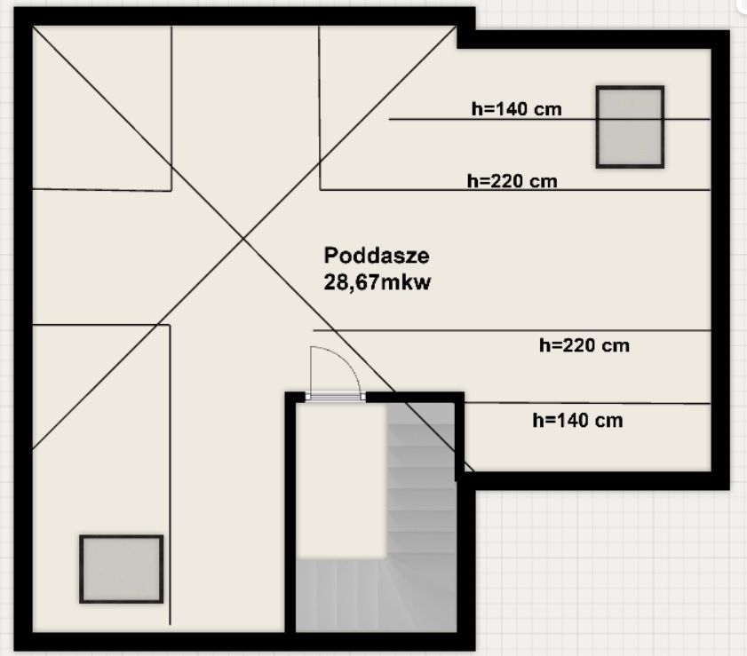 – duże i przestronne poddasze do dowolnej aranżacji, prowadzą na nie pełne betonowe schody.