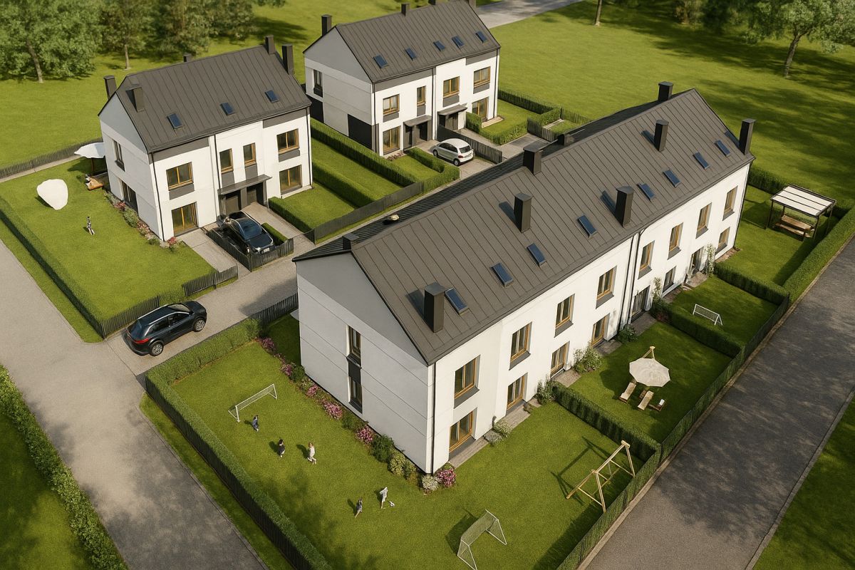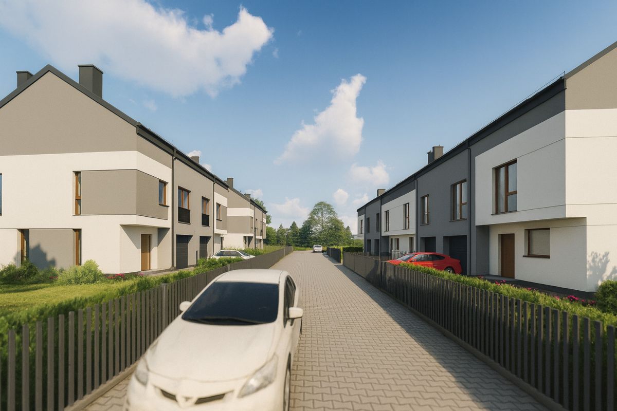 Proponowany dom na sprzedaż w zabudowie szeregowej (stan deweloperski), na nowym, zamkniętym osiedlu.