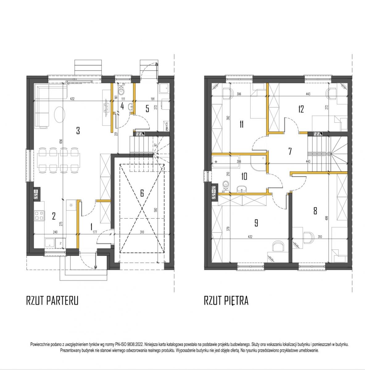 Powierzchnia całkowita 205,56 m² (powierzchnia użytkowa 133,92 m² + poddasze do adaptacji 71,6 m²), usytuowany na działce 353 m².