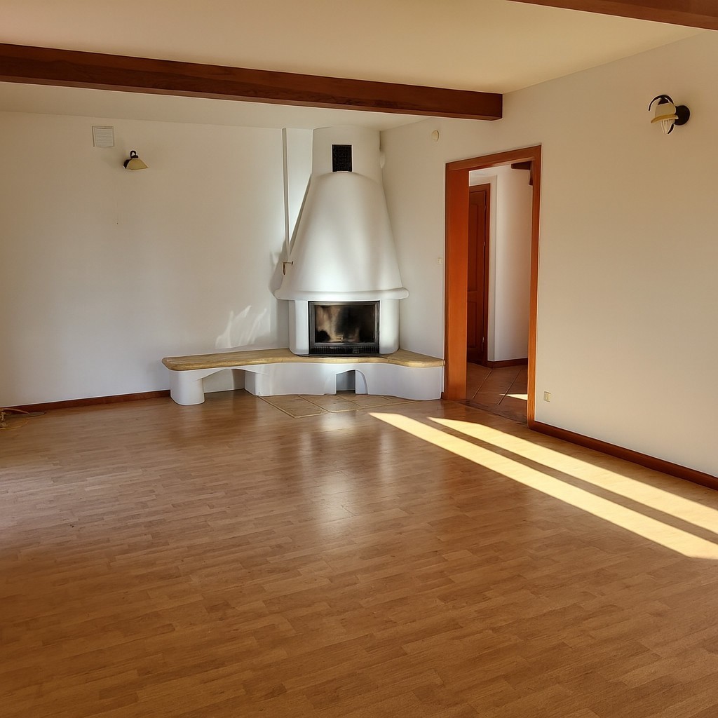 W salonie znajduje się kominek, a ogrzewanie gazowe zapewnia komfort i niskie koszty eksploatacji.