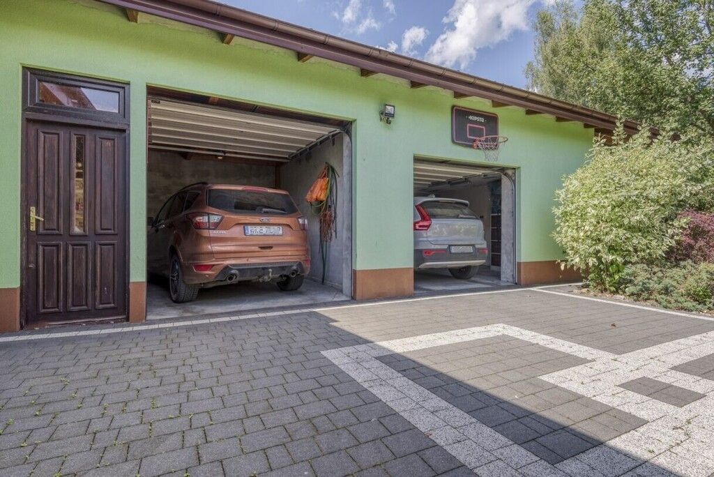• Dwa garaże ocieplone z automatyczną bramą, o powierzchni 80 m², podłoże beton przemysłowy.