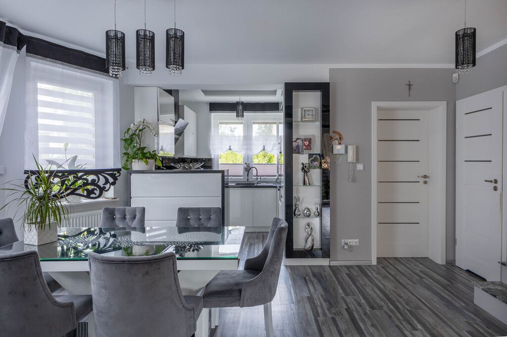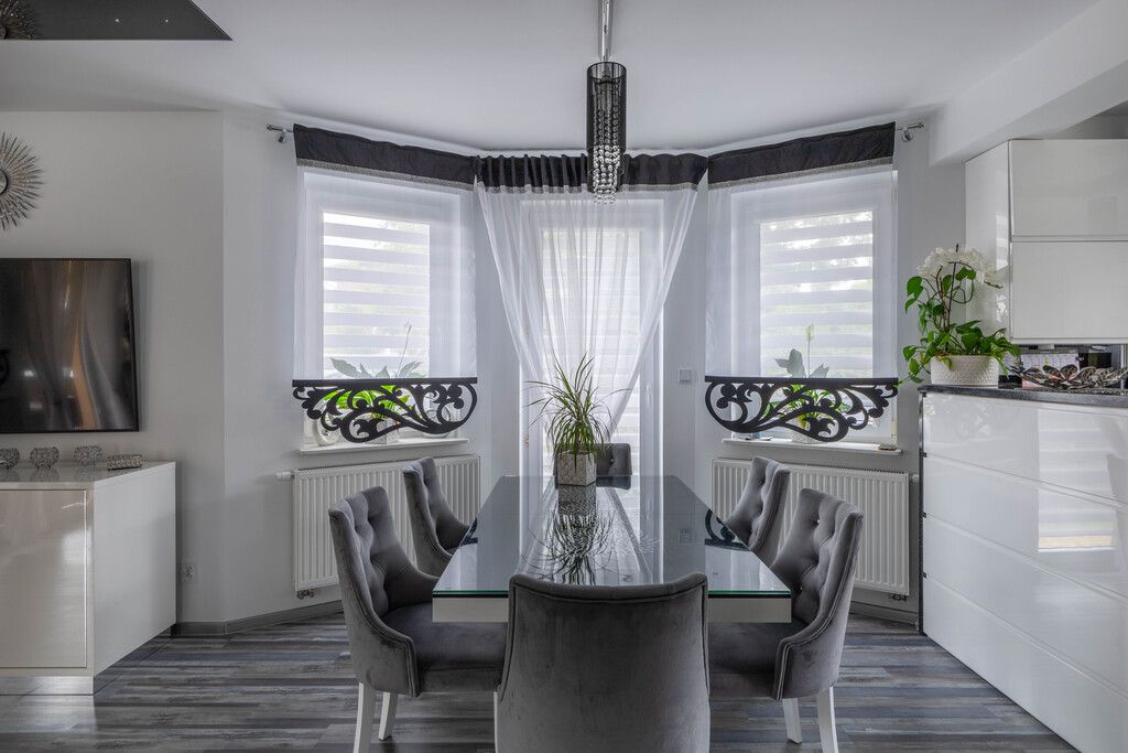 Dom wykończony został w stylu glamour, z dbałością o każdy detal i przy użyciu wysokiej klasy materiałów. Wnętrza są spójne, estetyczne i gotowe do wprowadzenia – bez konieczności jakichkolwiek prac wykończeniowych.