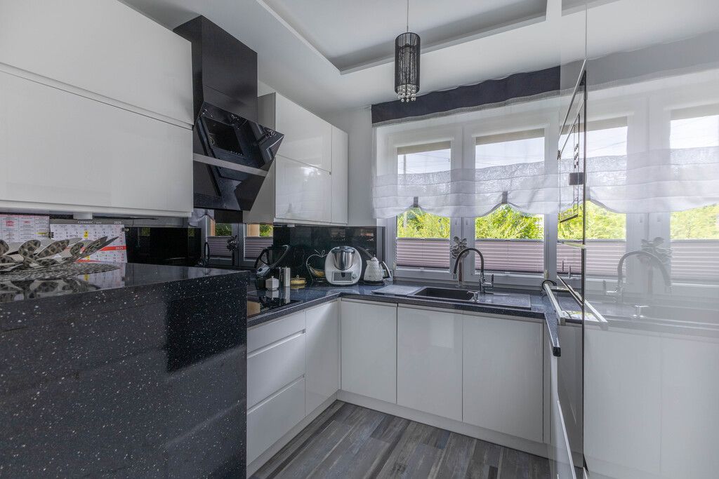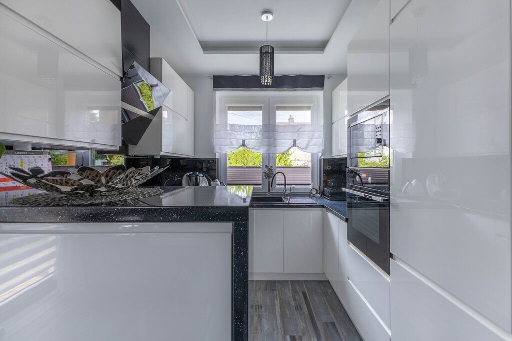 Kuchnia została wyposażona w sprzęt AGD bardzo dobrej jakości, a wszystkie zabudowy stałe są uwzględnione w cenie domu.
