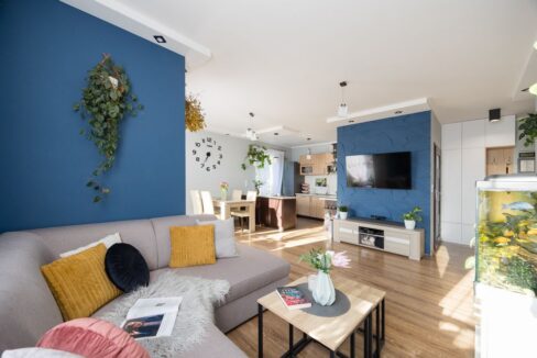Przestronna, otwarta część dzienna z możliwością wydzielenia strefy jadalnianej i wypoczynkowej