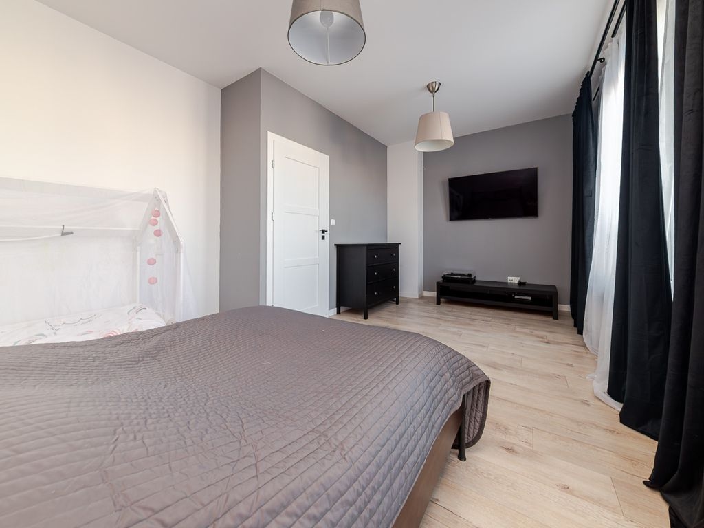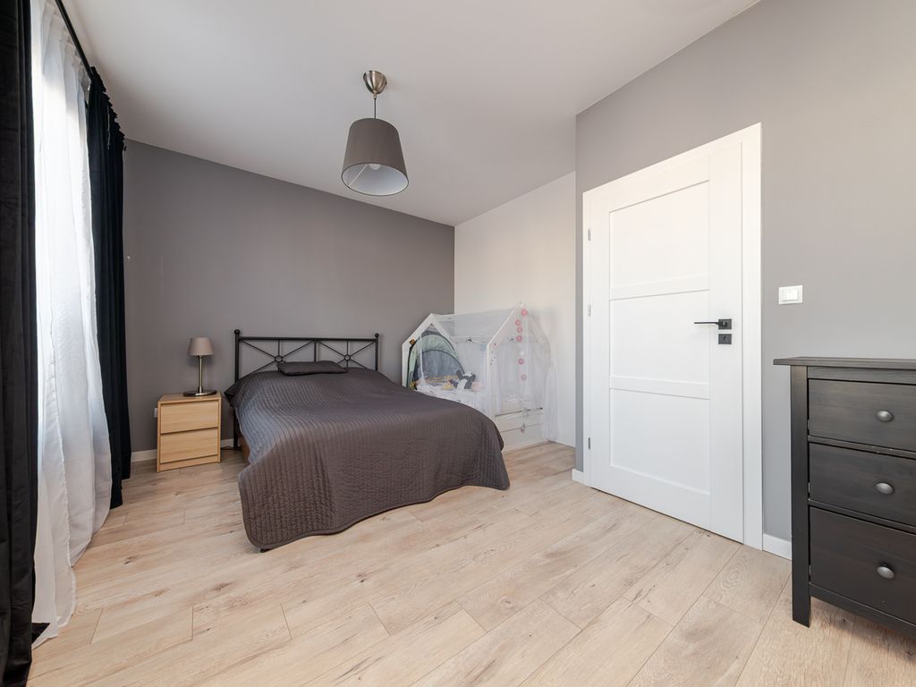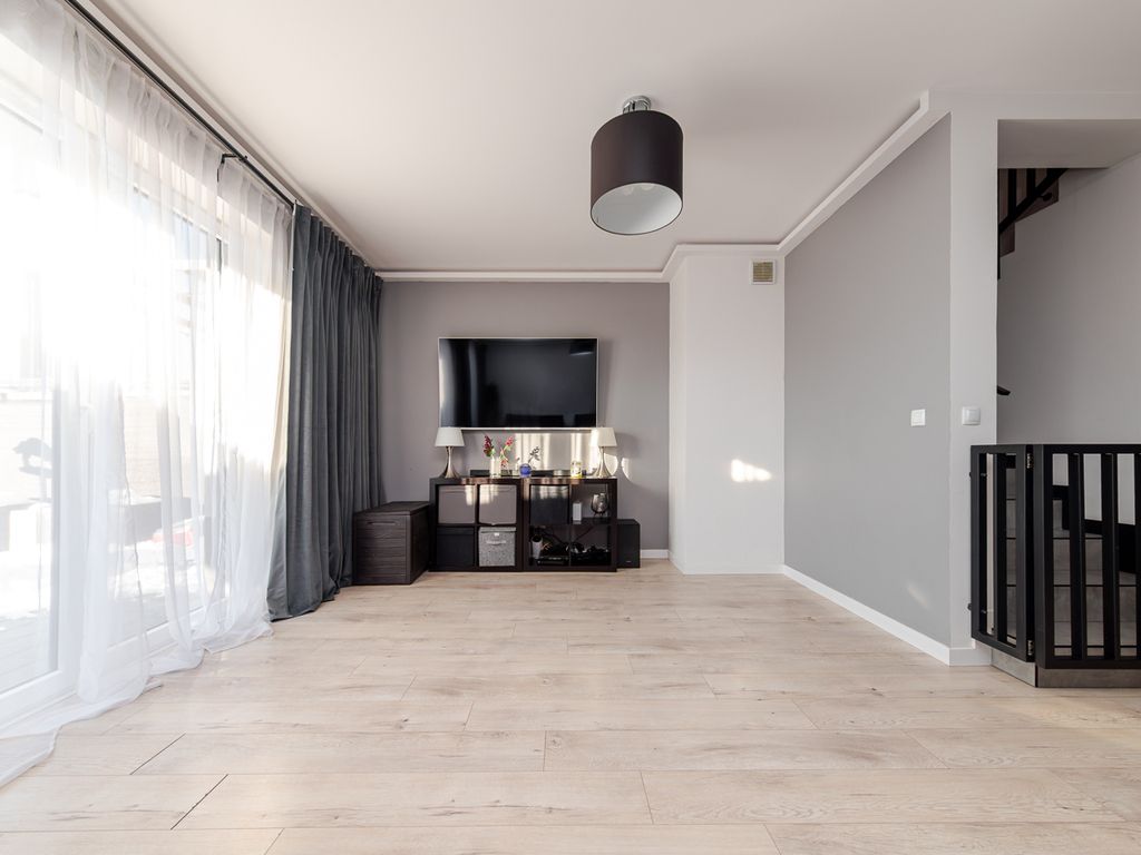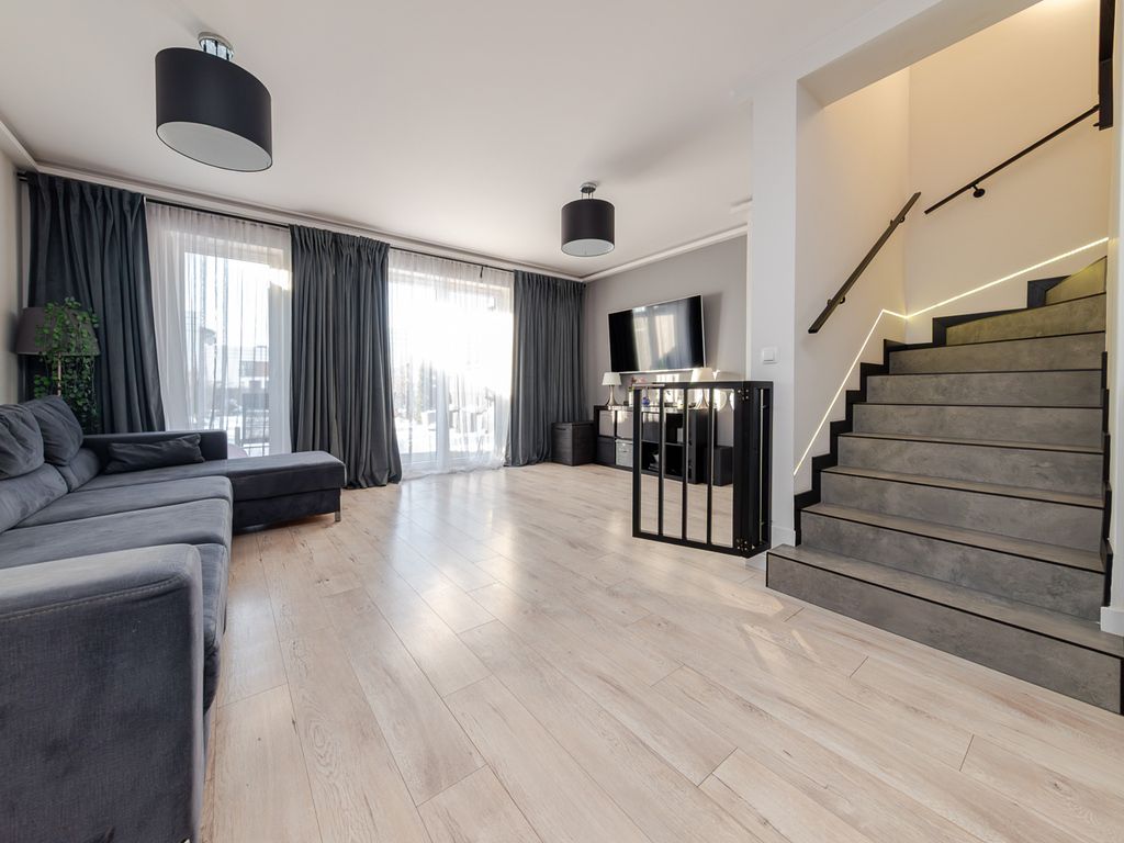 Dom ma dwa funkcjonalne poziomy. Na parterze znajdziesz przestronny salon połączony z aneksem kuchennym, idealny do spędzania czasu z rodziną i przyjaciółmi, oraz łazienkę. Salon jest naprawdę duży dzięki temu, że garaż jest poza bryłą budynku – tak jak to zazwyczaj jest w segmentach. Dzięki temu nie zabiera on dziennej przestrzeni do życia. To naprawdę bardzo ważne. Przyjedź zobacz, oceń sam. Dodatkowo latem salon możemy otworzyć na duży ogród dzięki temu powiększając strefę przyjemnego spędzania czasu. Piętro to strefa prywatna z trzema sypialniami, łazienką i balkonem. Dom ogrzewany jest gazowo.