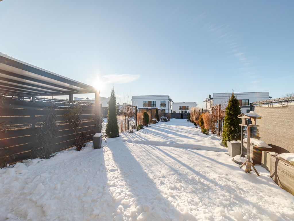 Działka o powierzchni 512 m² to prawdziwa perełka. Ogród ( ok 300 m²) został zaprojektowany i zrealizowany przez projektantkę z myślą o wygodzie – wyposażono go w automatyczny system nawadniania, który możesz sterować nawet z telefonu. Profesjonalny drenaż (dwa drenaże odprowadzające wodę a to nie reguła wśród podobnych ofert i w okolicy) gwarantuje, że Twoje rośliny (dużo różnych nasadzeń) zawsze będą miały idealne warunki do wzrostu, niezależnie od pogody. To doskonałe miejsce na popołudniowy relaks czy zabawę z dziećmi.