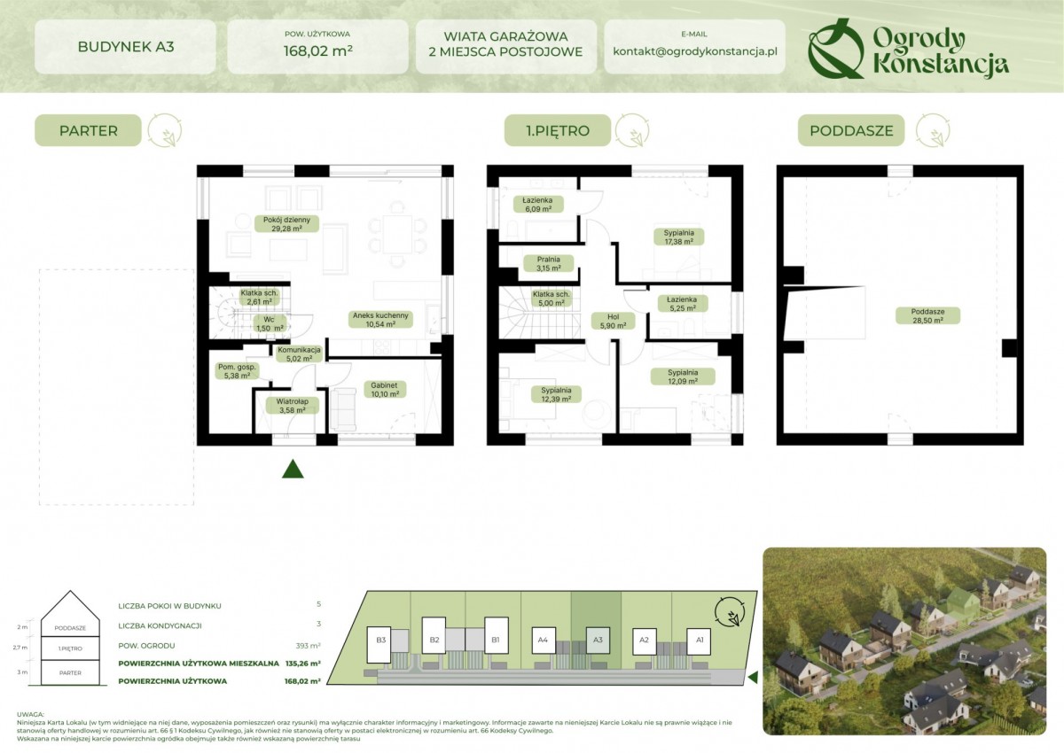 Budynek A3 ma powierzchnię 168,02 m2 na działce 393 m2.