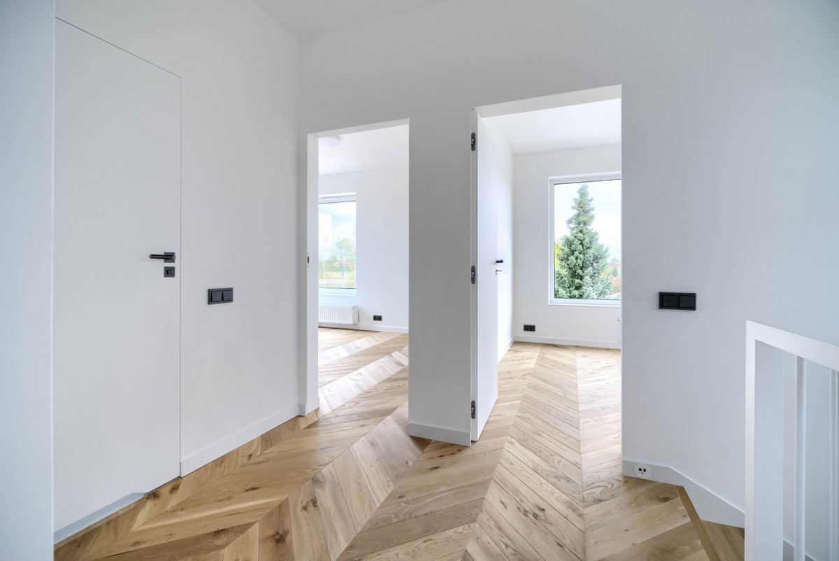 – piętro i gabinet: podłoga drewniana – jodełka francuska