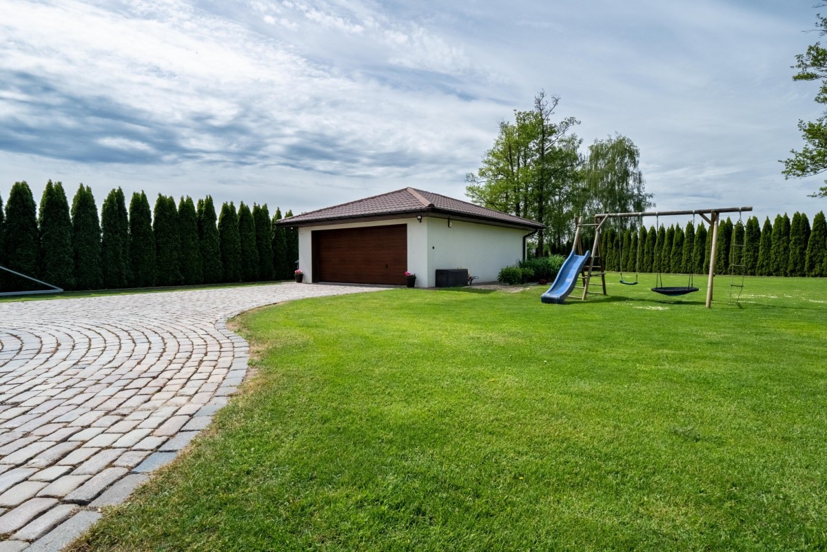 Zaciszna lokalizacja i duża działka udostępnia szerokie możliwości zaaranżowania ogrodu z takim, aby było w nim wiele ozdobnych roślin, ale także miejsce na wielofunkcyjną altanę, mini boisko, placyk zabaw i inne miejsca do wypoczynku.