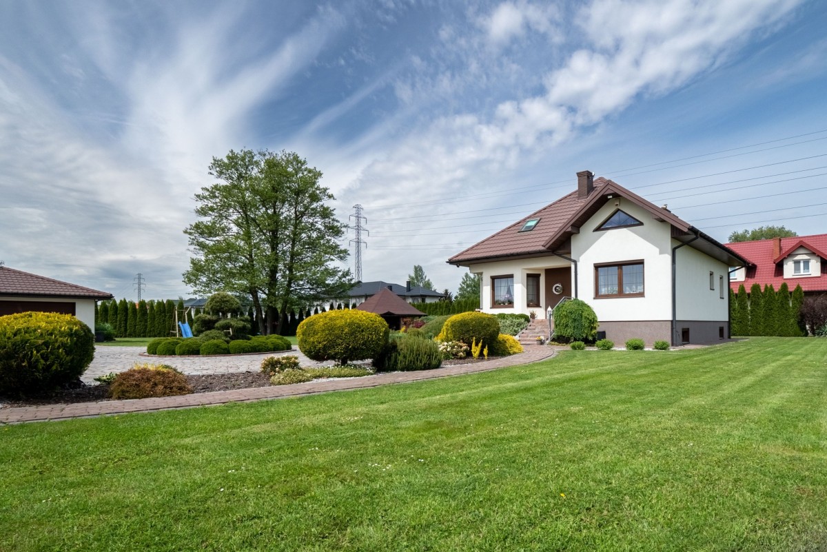 Dzięki fotowoltaice właściciela nieruchomości oszczędzanych na rachunkach za prąd (panele zamontowane na garażu). System alarmowy, automatycznie otwierana brama. Drzwi wejściowe antywłamaniowe. Na dachu blachodachówka firmy Braas.