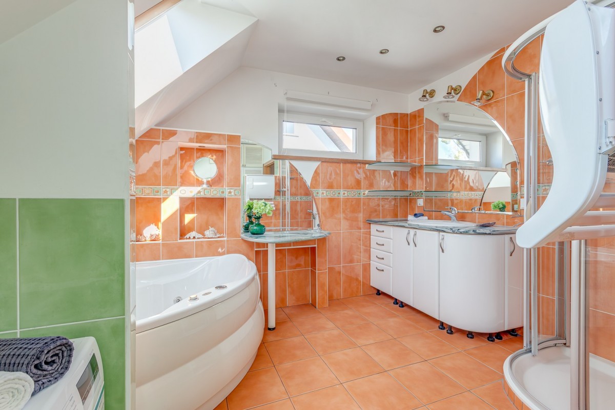Dom o powierzchni użytkowej 330 m², posadowiony na działce 664 m². Budynek z 1988 roku, zmodernizowany zgodnie z normami termoizolacyjnymi z 2021 roku, co gwarantuje energooszczędność i komfort cieplny. Wykonany z pustaka i ceramiki, urządzony oraz umeblowany.