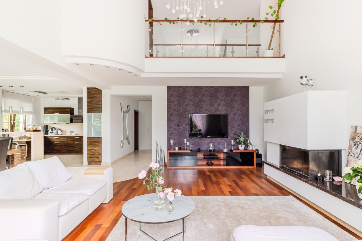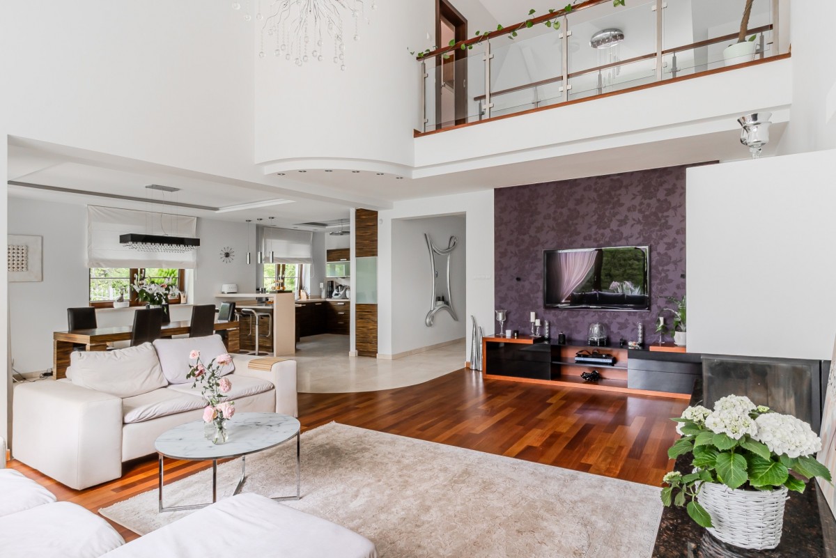 - Otwarta przestrzeń antresoli z widokiem na salon