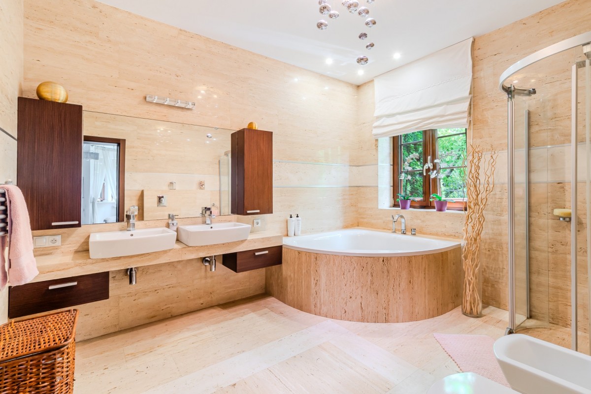 - Łazienka z wanną i prysznicem