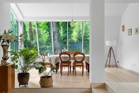 Lokalizacja to prawdziwy atut nieruchomości. Dom położony jest w cichej, prestiżowej części Kabat, tuż przy Rezerwacie Przyrody Park Natoliński i w bezpośrednim sąsiedztwie Lasu Kabackiego. W najbliższej okolicy znajdują się sklepy(Lidl, Żabka), restauracje, punkty usługowe, przedszkola oraz renomowane szkoły, w tym Szkoła Amerykańska i kompleks edukacyjny Fundacji Primus. Znakomita komunikacja zapewnia szybki dojazd do centrum Warszawy – około 15-20 minut samochodem lub metrem.