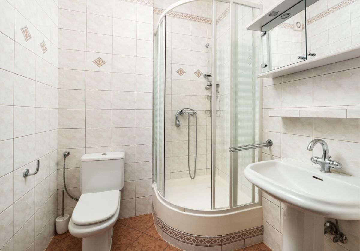 Na parterze znajduje się przestronny i przytulny salon z kominkiem, idealny na rodzinne spotkania lub elegancką przestrzeń do przyjmowania klientów, klasyczna kuchnia z jadalnią w pełni wyposażona w sprzęty AGD, łazienka z wanną i prysznicem, osobna toaleta, gabinet lub pokój do pracy oraz praktyczne pomieszczenie gospodarcze.