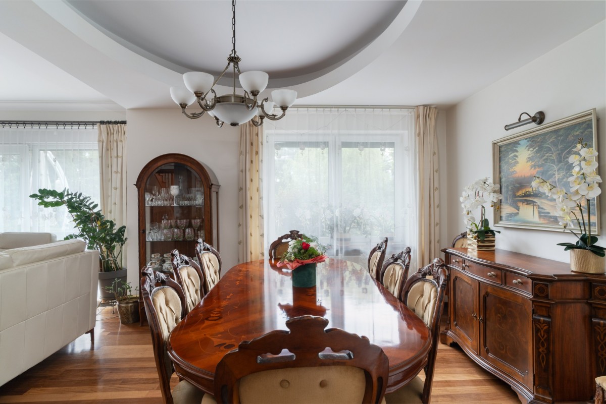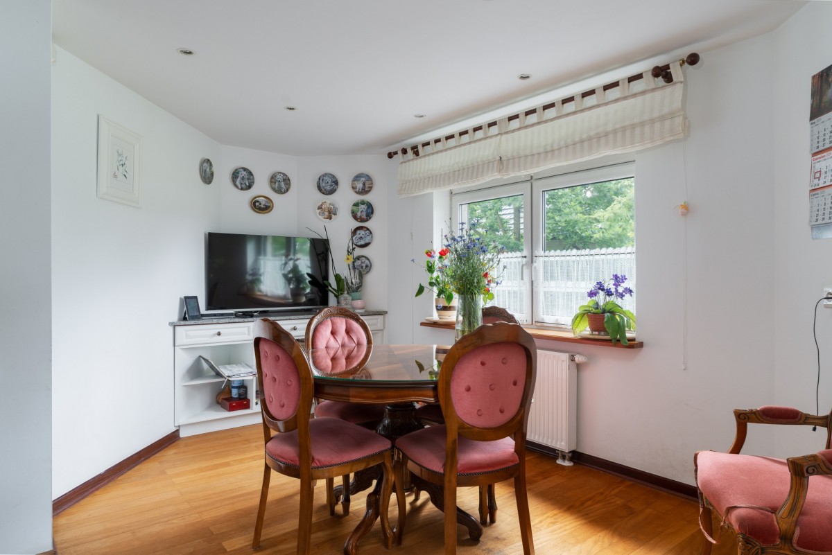 – Aneks śniadaniowy (8,80 m2) przestronny i jasny wyposażony w duży stół, nowoczesne i wygodne krzesła oraz okna.