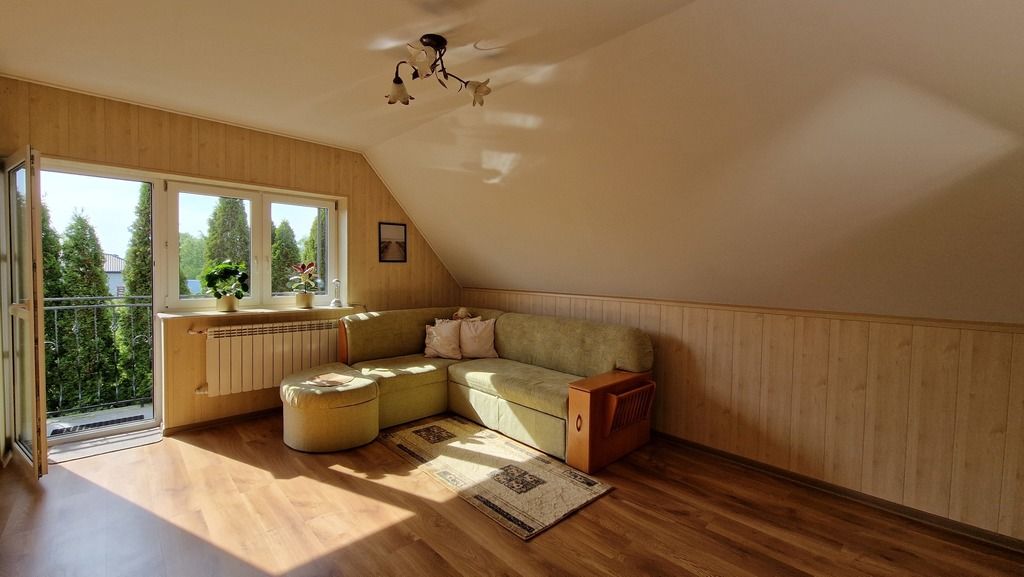 Z tyłu domu, bardzo duża przestrzeń pozwala na organizowanie rodzinnych spotkań, wspólnych gier, zabaw zachowując przy tym całkowitą prywatność.