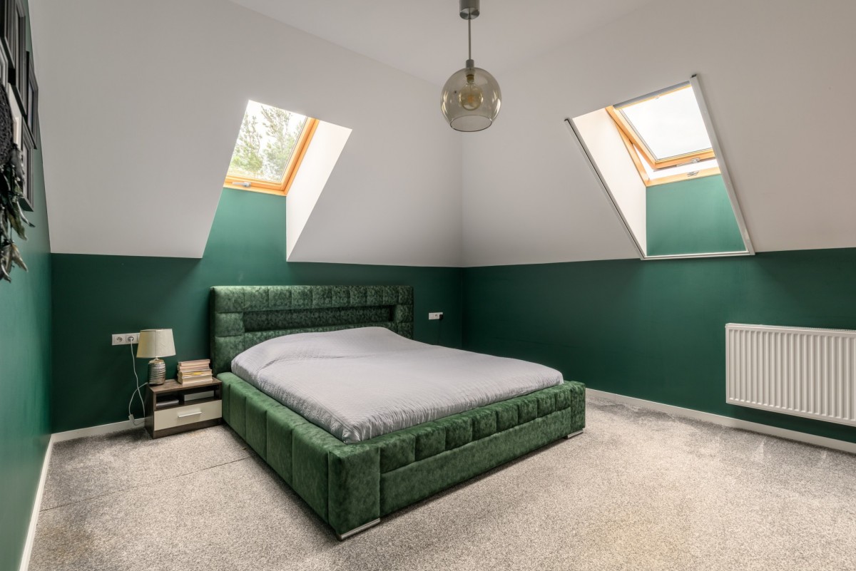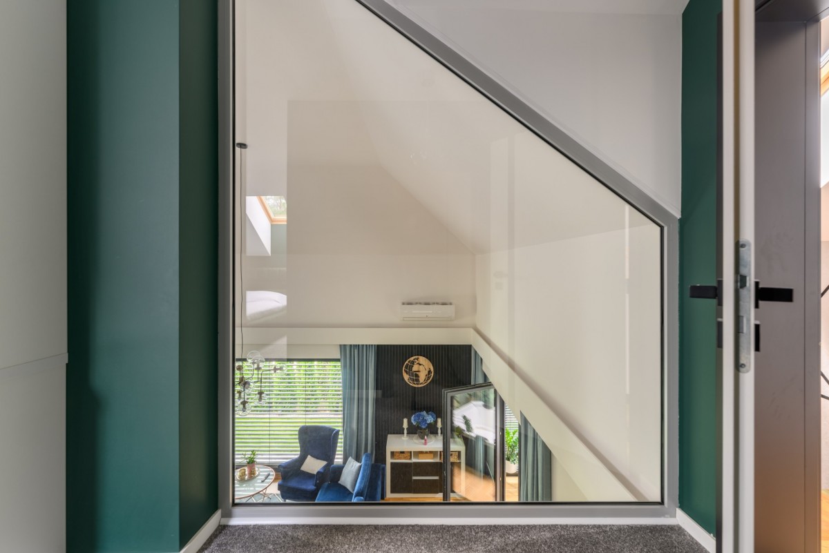 - Główna sypialnia z garderobą i przeszkloną antresolą