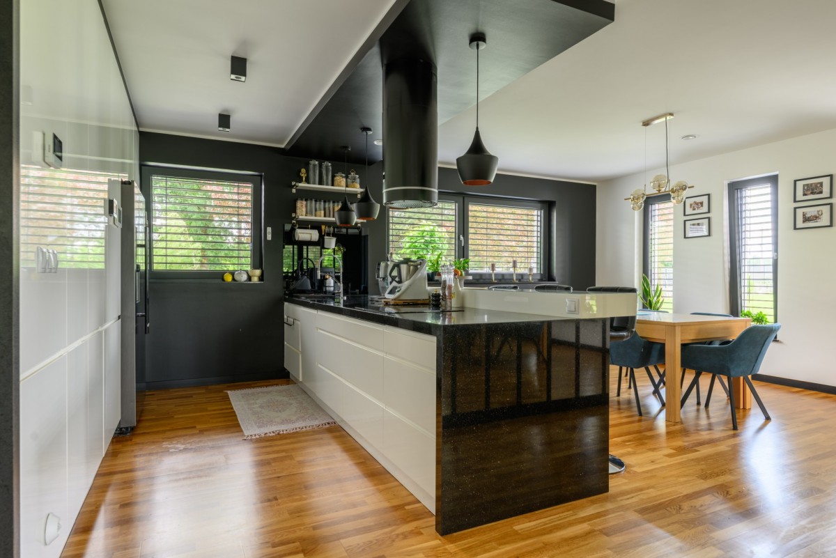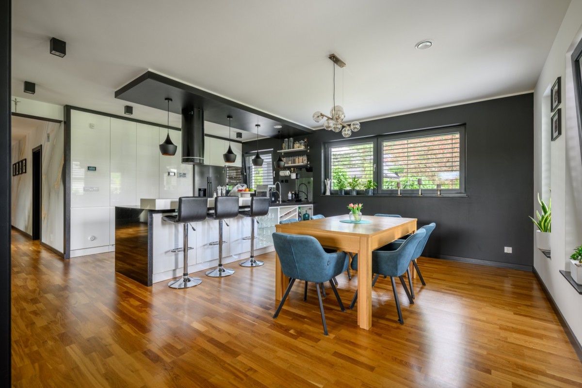 - Otwarta kuchnia połączona z jadalnią