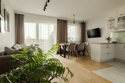 - Przestronne pomieszczenia urządzone w spójnym stylu