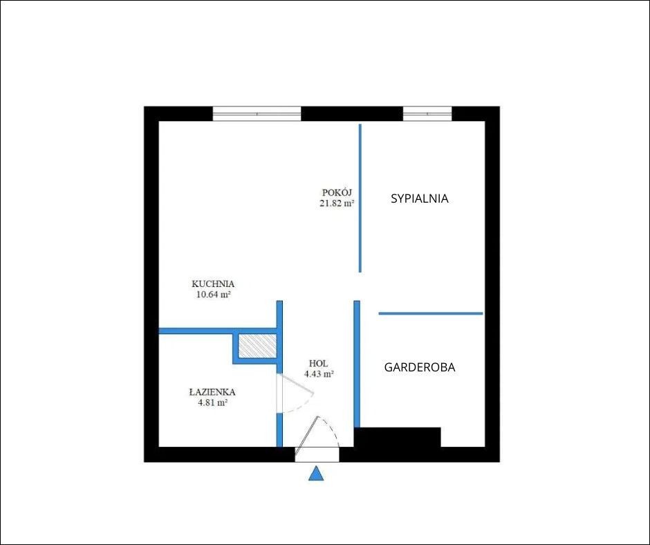 Wnętrze zostało zaprojektowane jako otwarta, harmonijna przestrzeń, w której znajduje się jasny salon połączony z aneksem kuchennym w pełnej zabudowie (wyposażonym w sprzęt AGD), przedpokój, komfortowa łazienka oraz wyraźnie oddzielona część sypialniana. Dzięki funkcjonalnemu układowi istnieje możliwość łatwego wydzielenia osobnej sypialni – np. za pomocą lekkiej ścianki działowej lub drzwi przesuwnych, co pozwala dostosować wnętrze do indywidualnych potrzeb i stylu życia.