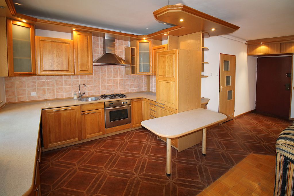 Na podłogach mozaika parkietowa w bardzo dobrym stanie, w łazienkach, części kuchennej i przedpokoju płytki.