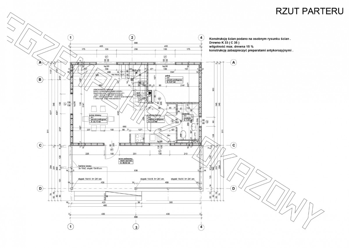 W trakcie realizacji pozwolenie na budowę domu rekreacyjnego/całorocznego z drewnianych bali o powierzchni zabudowy 60m.