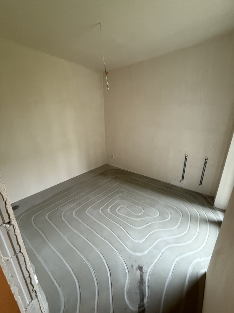 Ogrzewanie podłogowe w całym mieszkaniu: dla wygody oraz oszczędności miejsca i większych możliwości aranżacyjnych, bo kaloryfery zostały zdjęte.