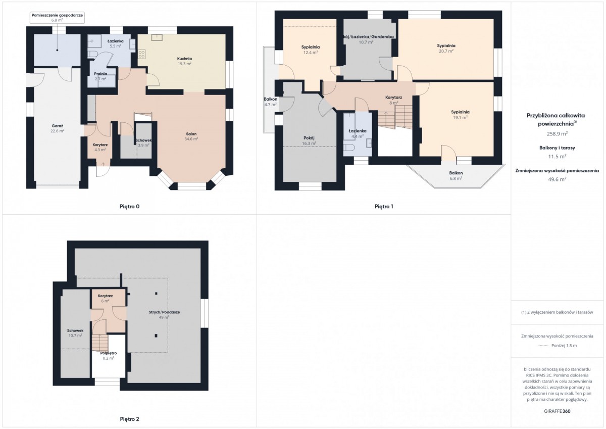 Piętro: 4 sypialnie, łazienka, garderoba/pokój.