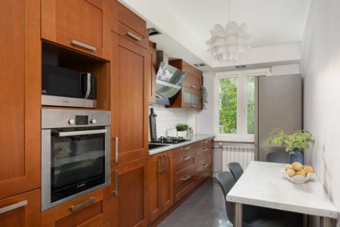 Nieruchomość położona na końcu osiedla, przez co jest najbardziej oddalona od Alei Stanów Zjednoczonych, dzięki czemu w mieszkaniu jest cicho. Świetna lokalizacja zaraz obok przystanków autobusowych, z których do stacji metra „Politechnika” można dojechać w 10 minut. Blisko nad Wisłę, do ulicy Francuskiej i do Ronda Wiatraczna, w pobliżu wszystko co do życia potrzebne: przedszkola, szkoły, żłobek, restauracje, sklepy, fryzjer, salon kosmetyczny, market, apteka, przychodnia, fryzjer, itd.