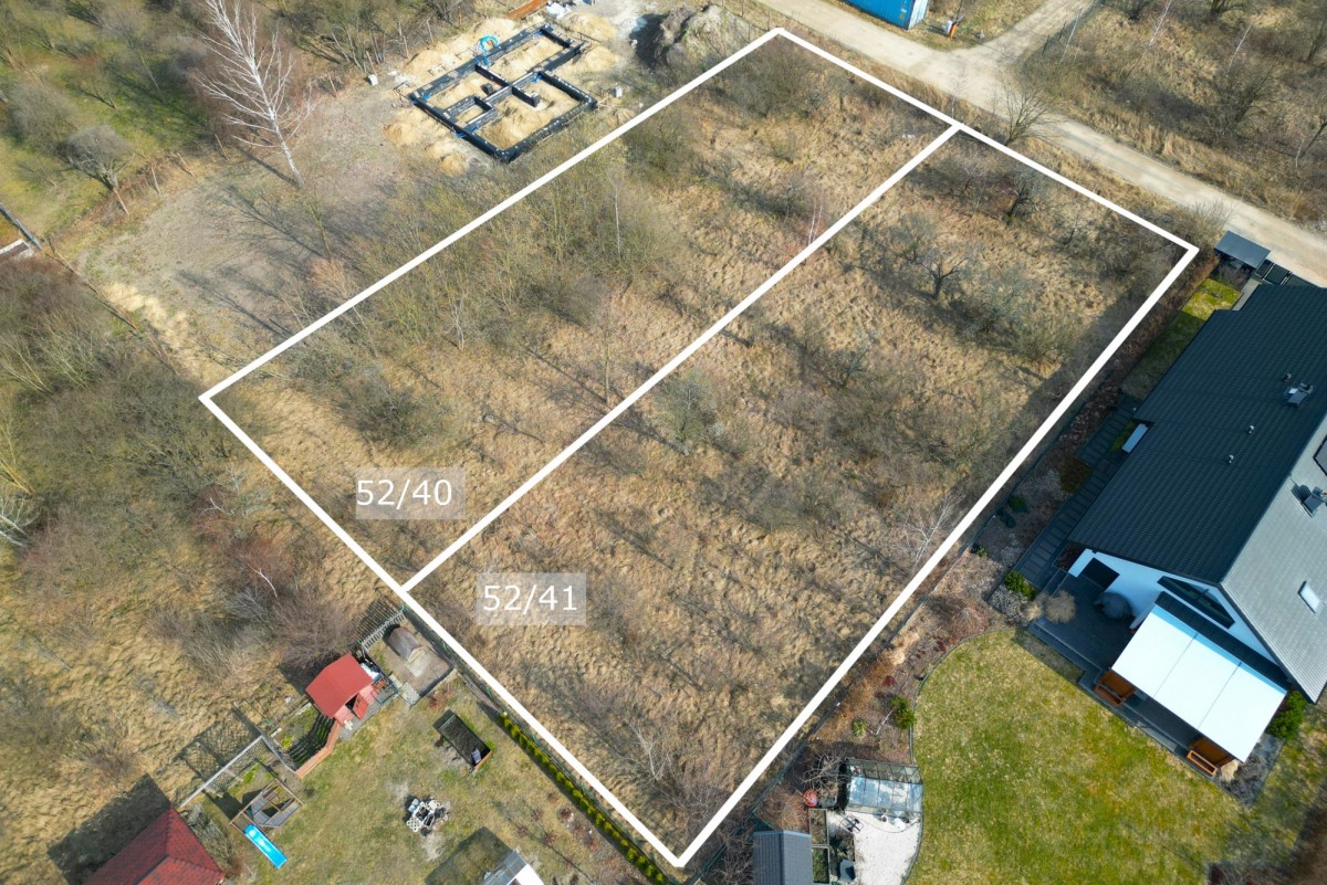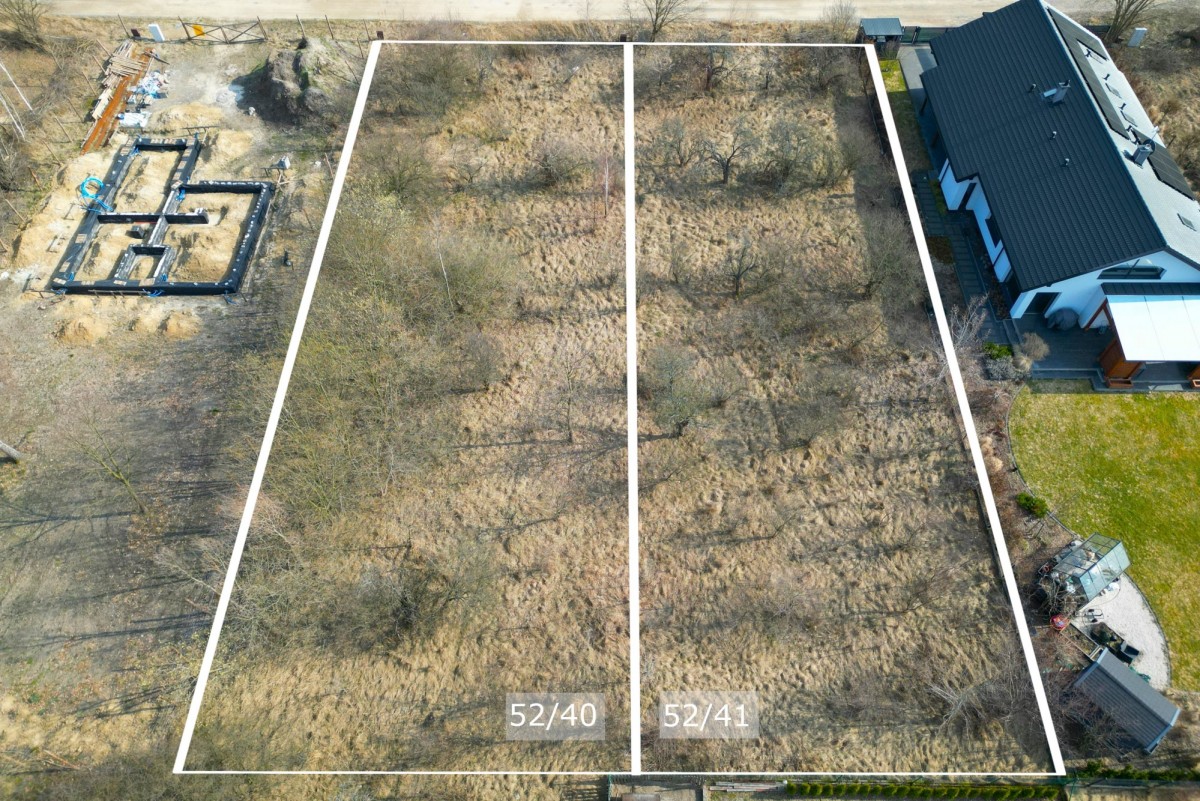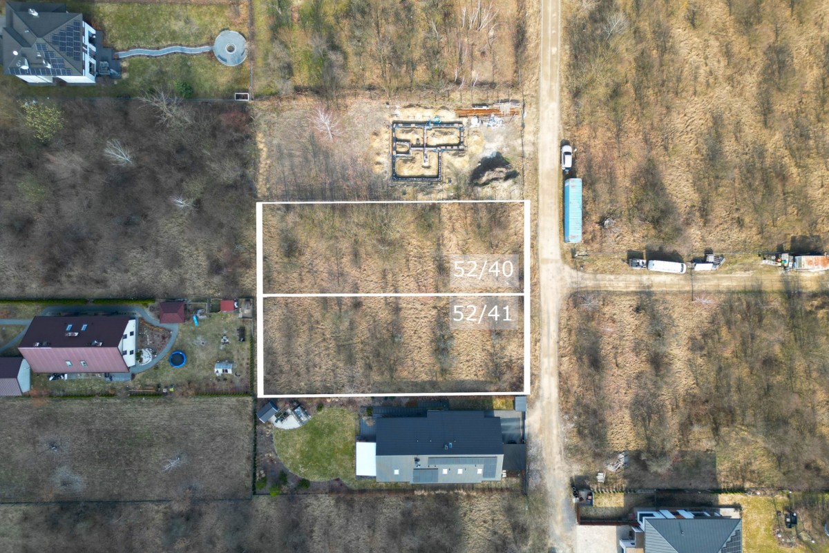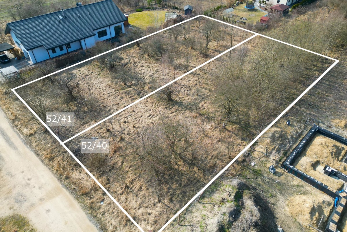 Działki w regularnym kształcie prostokąta o łącznych wymiarach 38 x 53 m (19 x 53 m każda), płaskie, bez nasadzeń wymagających zezwolenia na wycięcie. Dojazd utwardzoną drogą gminną.