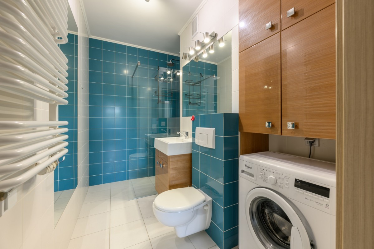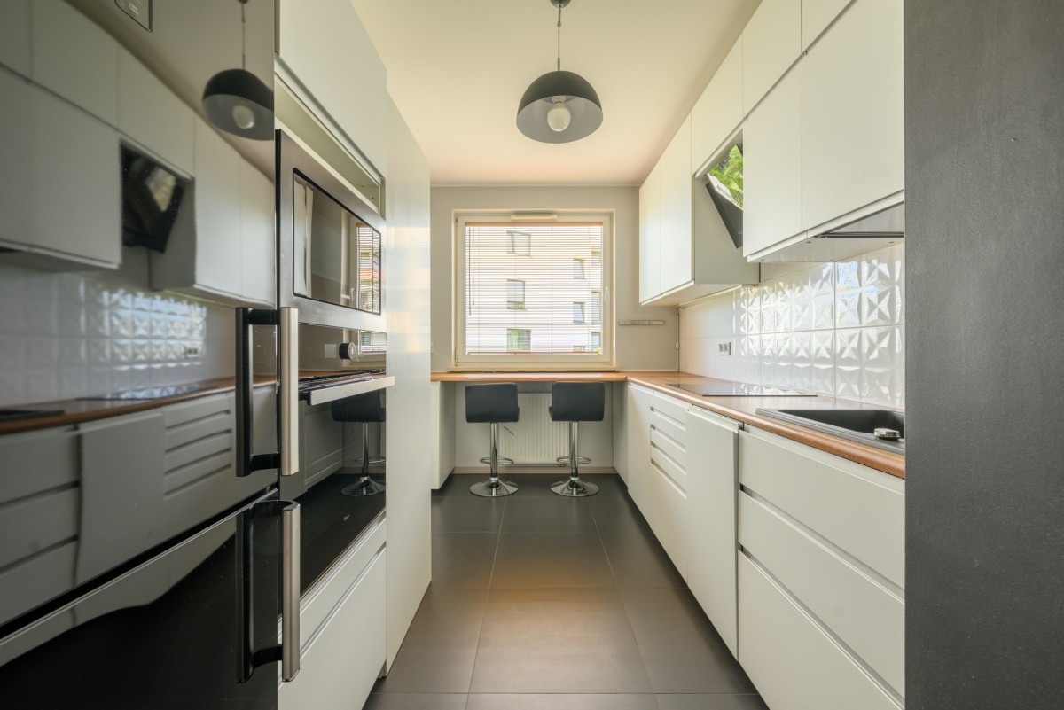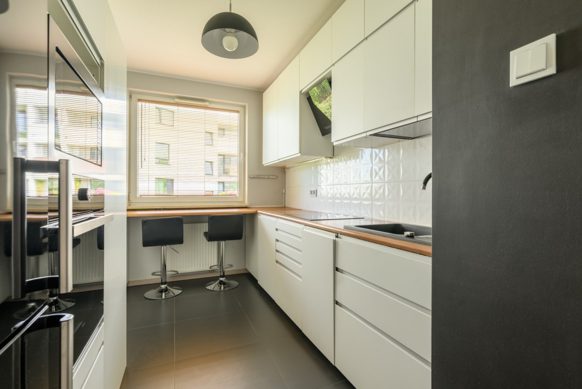 • Kuchnia: zmywarka, piekarnik, mikrofala w zabudowie, lodówka – pełne wyposażenie AGD