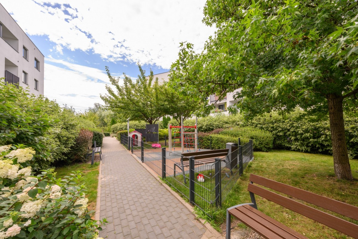 • Wokół inwestycji działa bogata sieć usług: sklepy, kawiarnie, restauracje, żłobki, przedszkola, place zabaw, gabinety lekarskie, punkty fryzjersko-kosmetyczne, a nawet InPost.