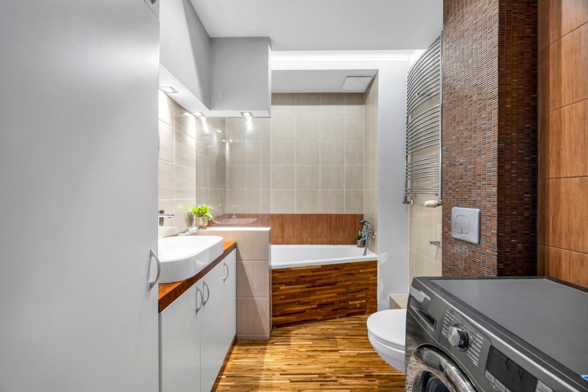Wartymi podkreślenia zaletami apartamentu są duże, drewniane okna, wysokie pomieszczenia (3 metry wysokości), przestronna garderoba, balkon z widokiem na zieleń, a także drewniany parkiet położony we wszystkich pomieszczeniach.