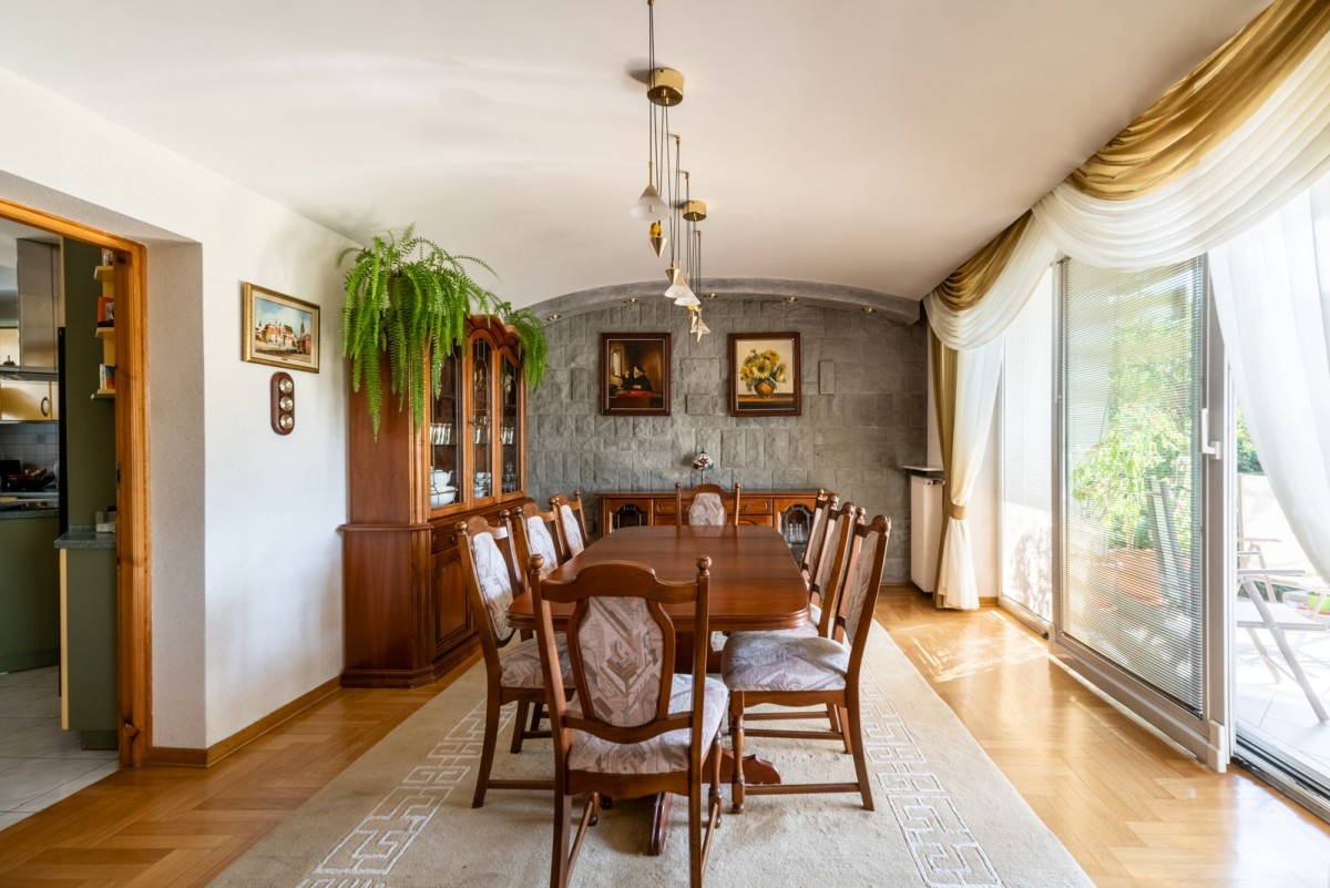 Dodatkowo na parterze jest wydzielona osobna część (kuchnia, łazienka, pokój z tarasem z wyjściem do ogrodu), mogąca być mieszkaniem dla rodziców, lub dzieci, lub dla gosposi.