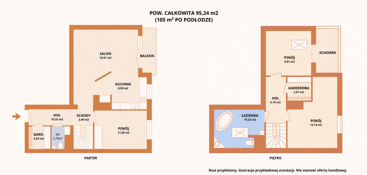 Na sprzedaż wyjątkowe, dwupoziomowe mieszkanie 4-pokojowe o powierzchni 95,24 m² (ok. 105 m² po podłodze), położone przy ul. Gajowej w Ząbkach, na 3. i 4. kondygnacji budynku z 2008 roku.