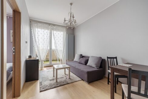 Z kuchni oraz jadalni prowadzi wyjście na balkon o powierzchni 5,66 m² z przyjemną ekspozycją wschodnią — idealne miejsce na poranną kawę.