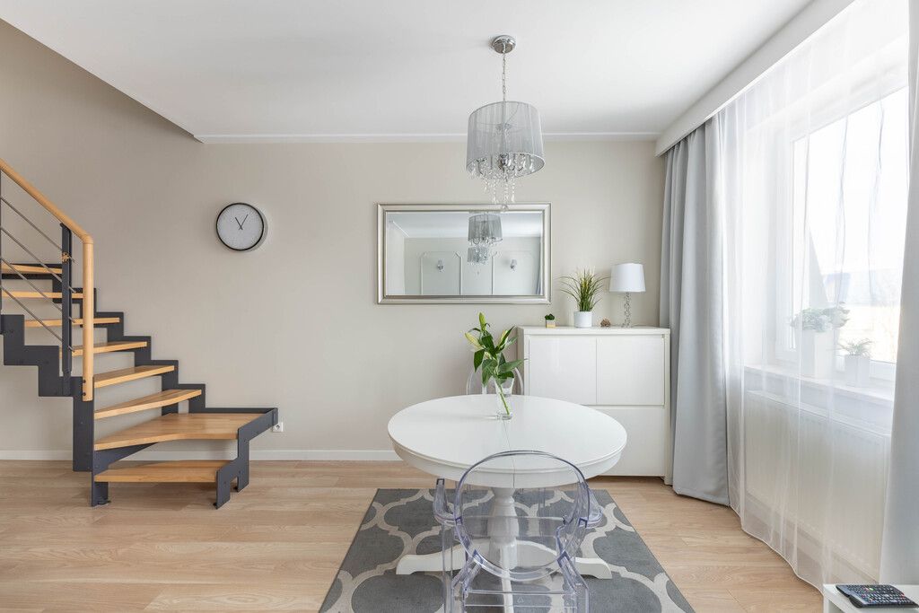 This two-story apartment, furnished to a very high standard, is located in a green, safe neighborhood, in a well-maintained, gated community in Piaseczno , near Warsaw, on Staszica Street. It’s an ideal option for a family.