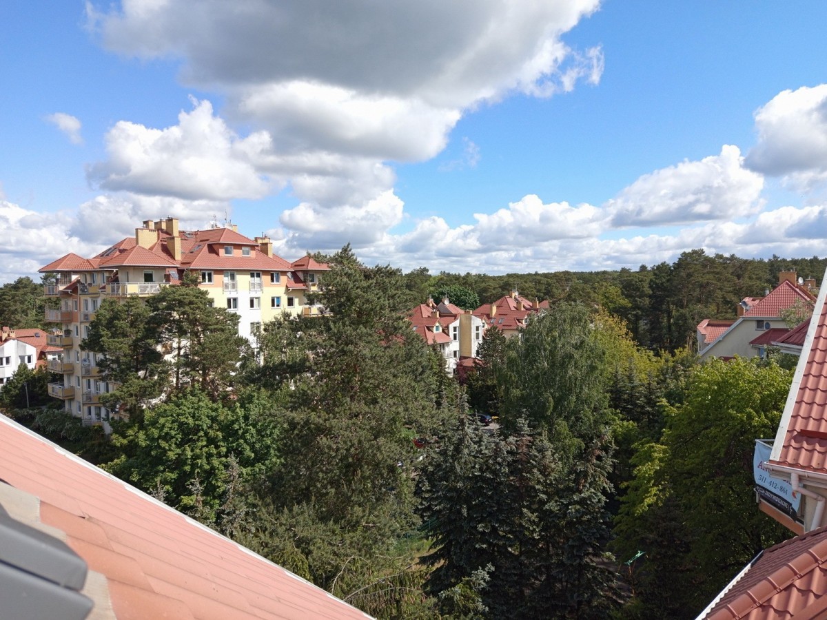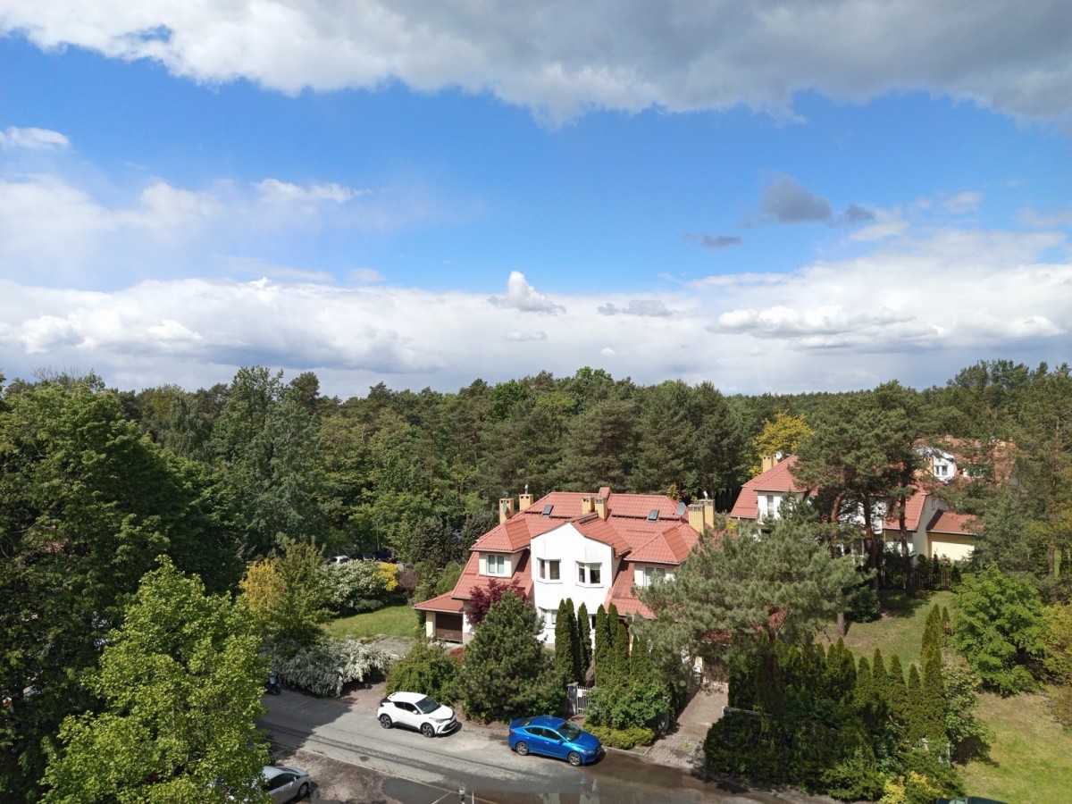 Dwupoziomowe mieszkanie na osiedlu Wioska Szwajcarska w Otwocku pod Warszawą. Gwarantowany widok z balkonu na niezwykłe zachody słońca nad lasem.