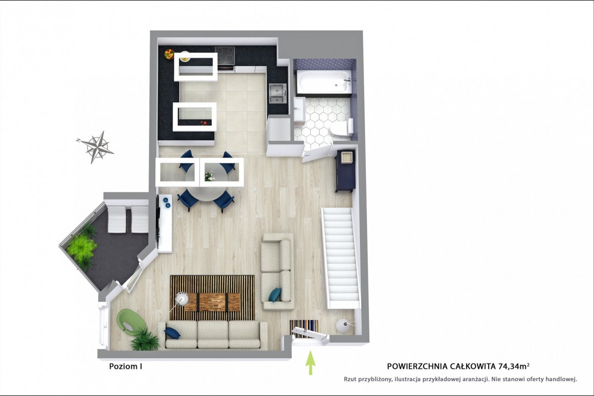 – mieszkanie jest dwupoziomowe, co zapewnia duże możliwości aranżacyjne i niepowtarzalny charakter,