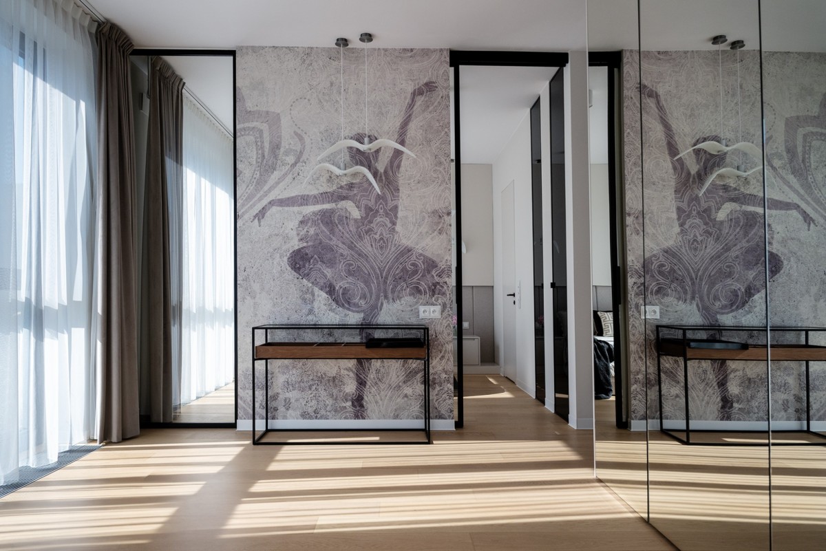Apartament został wykończony wysokiej jakości materiałami. Klimatyzacja we wszystkich pomieszczeniach. Wyposażenie: nowy sprzęt AGD, w każdym pokoju szafy wnękowe, deska dębowa na podłodze. Mieszkanie wykończone i w pełni umeblowane. Sysytem SMART-HOME.