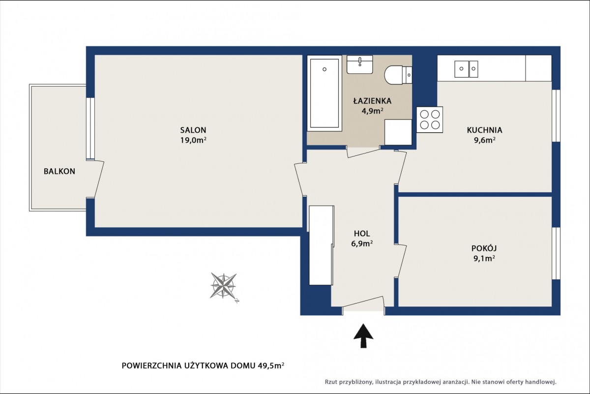 Mieszkanie o powierzchni 49,5m2 składa się z salonu o ekspozycji południowo wschodniej, z którego wychodzi się na balkon, z sypialni, z oddzielnej, widnej kuchni, łazienki i holu z szafą.