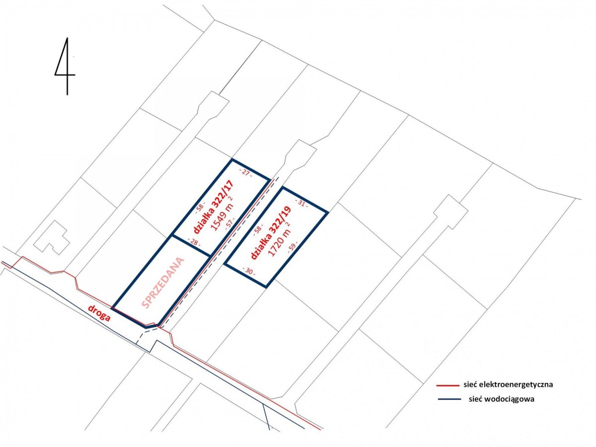 Ogłoszenie dotyczy działki o nr ewid. 322/19, do sprzedaży oferowana jest również sąsiednia działka 322/17.