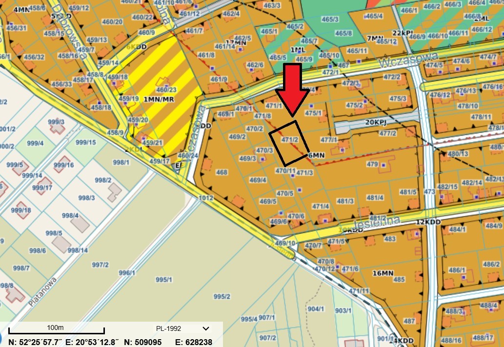 Wymiary 37x29m, MPZP – oznaczenie MN6 – zabudowa jednorodzinna wolnostojąca, dostęp do drogi, dojazd drogą gruntową.