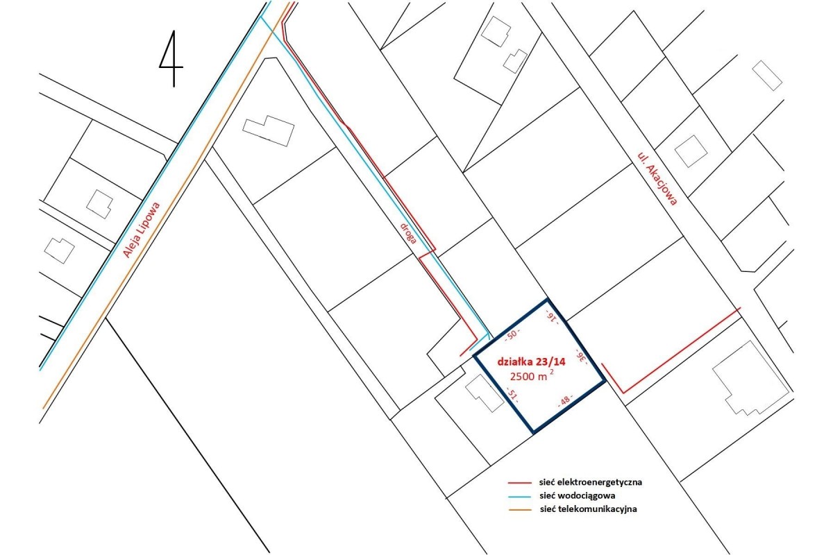 Na sprzedaż działka nr ewid. 23/14, o powierzchni 2500m2, położona w miejscowości Radziejowice Parcel, gm. Radziejowice (pow. żyrardowski).