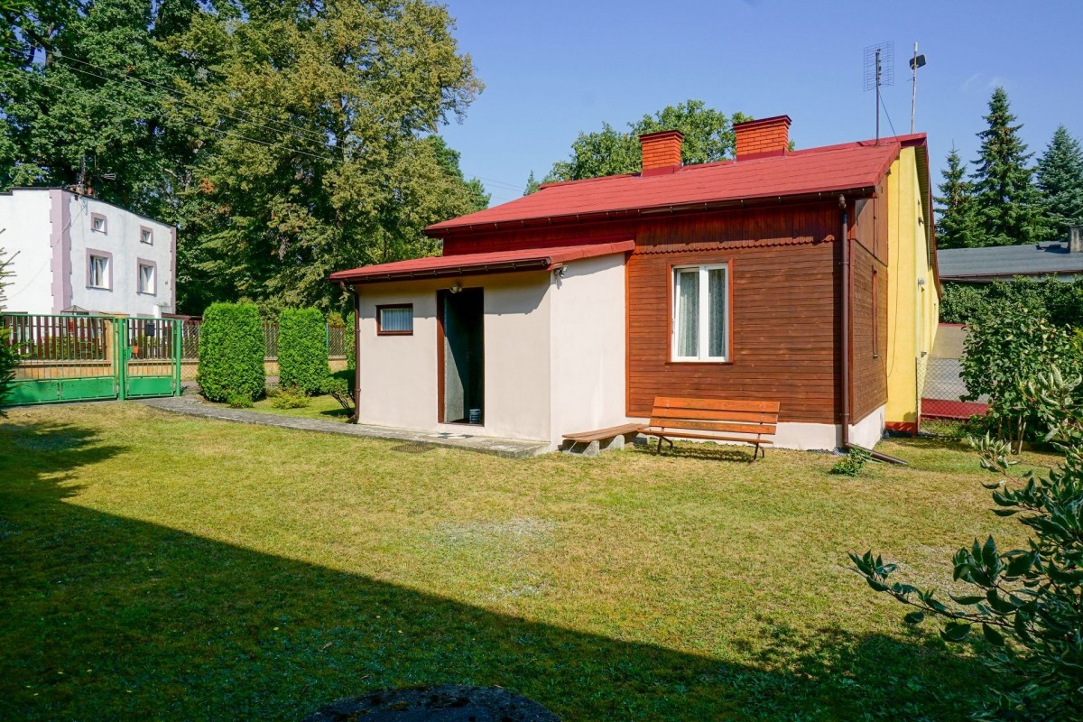 Obecnie ogrodzony teren zabudowany jest drewnianym domem o powierzchni 32m2 w ostrej granicy działki. W ulicy dostępne są wszystkie media miejskie: wodociąg, kanalizacja, gaz, prąd i telekomunikacja. Budynek podłączony jest do sieci elektroenergetycznej i wodociągu miejskiego. Obecny właściciel korzysta ze szczelnego szamba, ale na działce znajduje się studzienka kanalizacyjna, co pozwala na szybkie podłączenie do sieci. Z tyłu posesji znajduje się budynek gospodarczy 15m2.