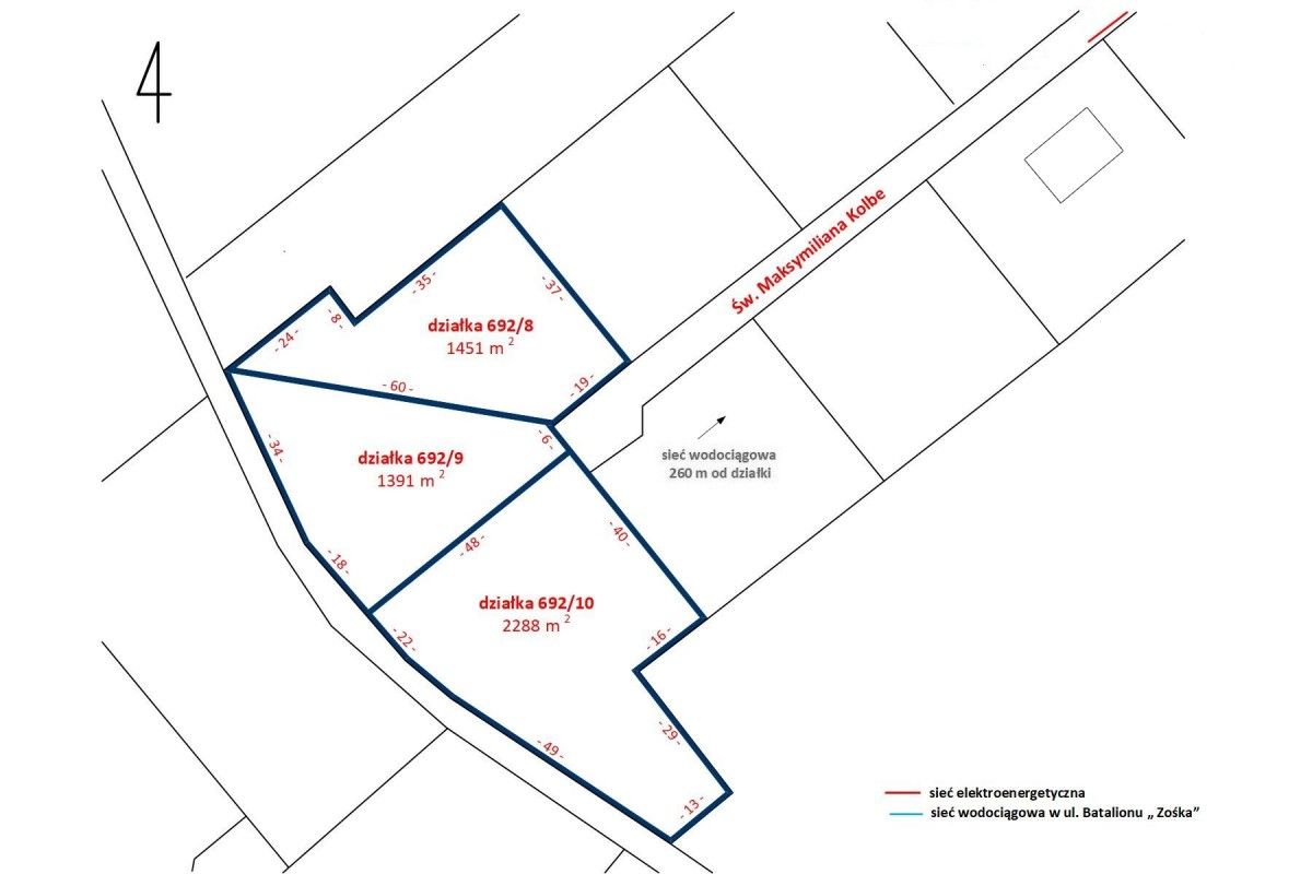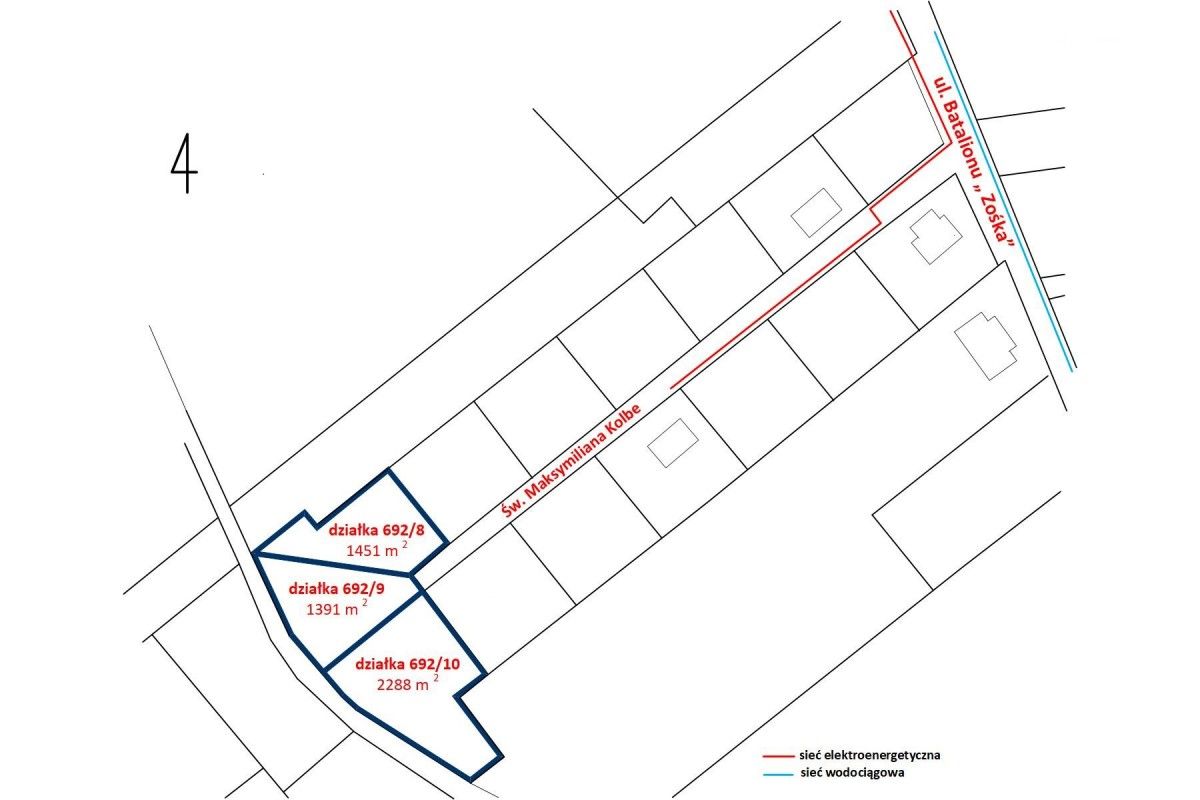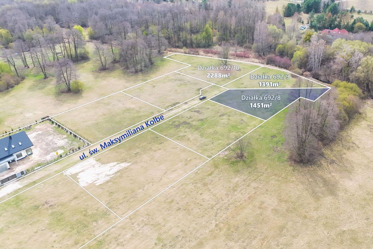 Ulica św. Maksymiliana Kolbe biegnąca przy wydzielonych działkach zakończona jest tzw. zawrotką, co ogranicza ruch tylko do mieszkańców i ich gości. Sąsiedztwo rzeki oraz terenów zielonych daje poczucie spokoju i przestrzeni.