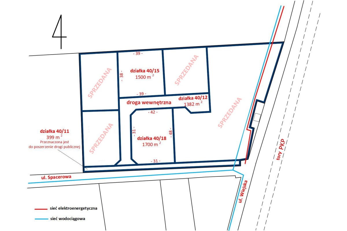 Wodociąg miejski oraz sieć elektroenergetyczna w ulicy.