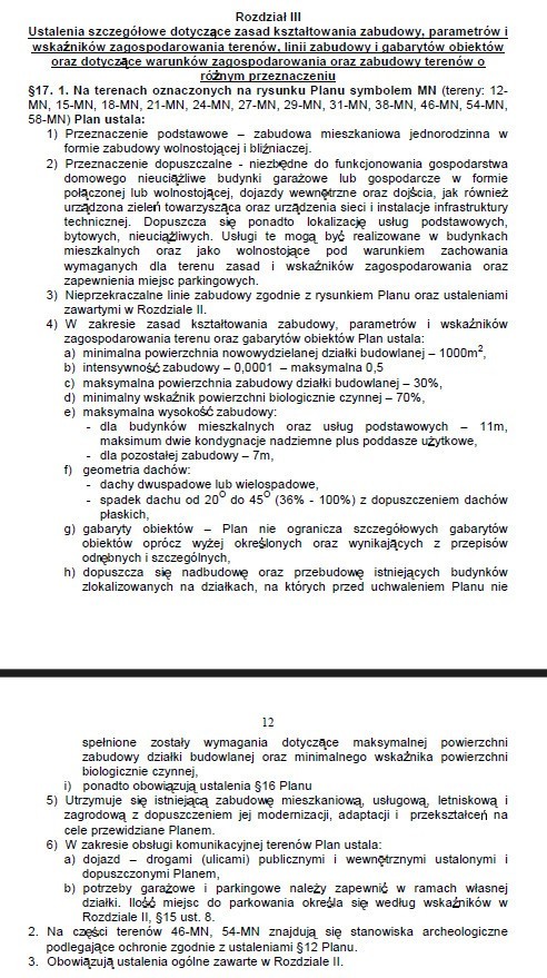- minimalna powierzchnia działki w MPZP: 1000 m²