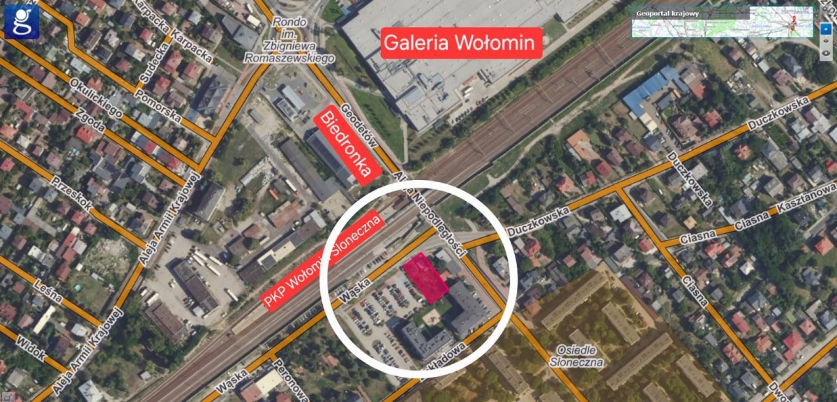 Na sprzedaż działka budowlana 959 m² w bardzo dobrej lokalizacji – 250m od Galerii Wołomin.